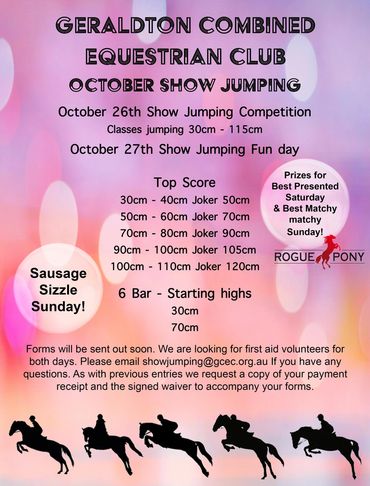 I would also like to take this time to remind members that the Geraldton Combined Equestrian Club membership does not provide personal accident injury cover. It is the responsibility of the individual to seek cover.